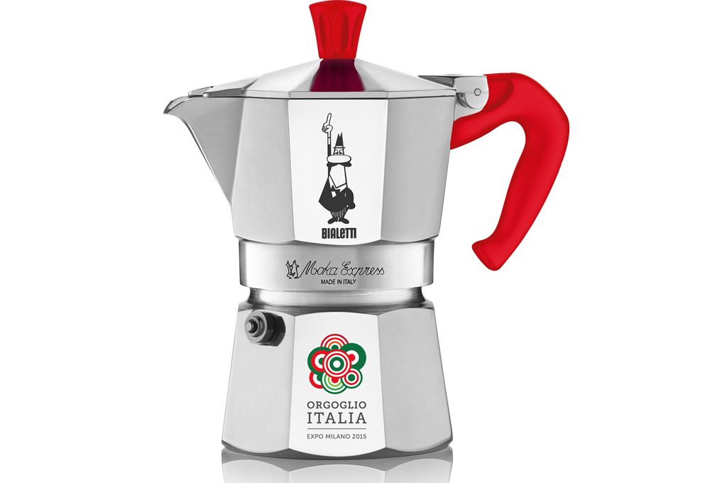 Moka Express Padiglione Italia è il simbolo del gusto italiano con il logo esclusivo; Bialetti presenta anche Moka Express Limited Edition, nei colori di Expo o vestita con il tricolore