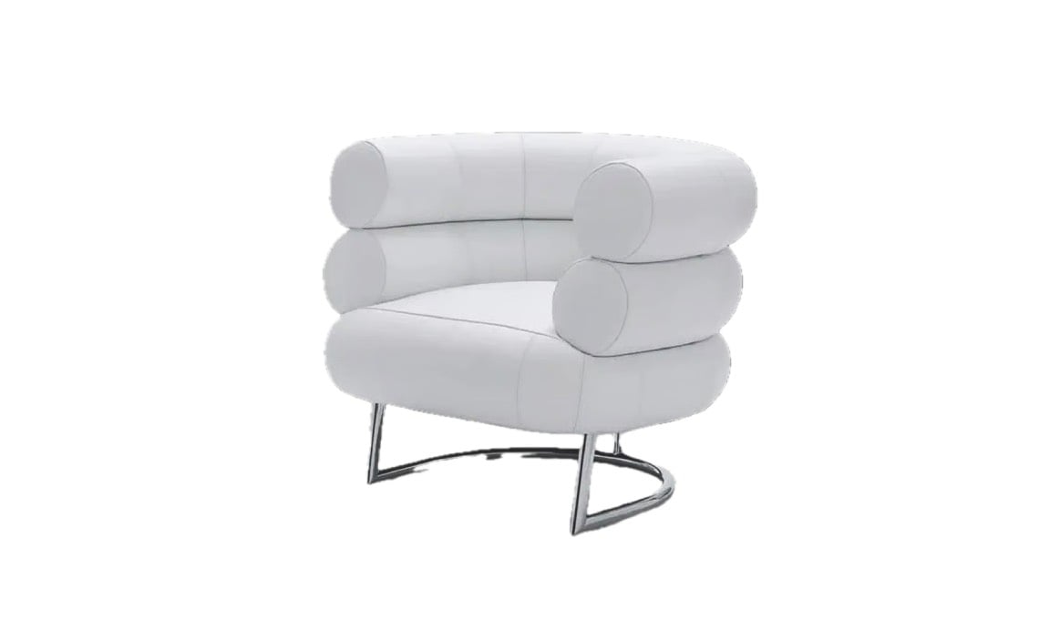 Eileen Gray l’avvolgente poltrona in pelle con base in tubolare d’acciaio Bibendum, ispirata al personaggio della pubblicità Michelin [ClassiCon, cm 90x83x73h].