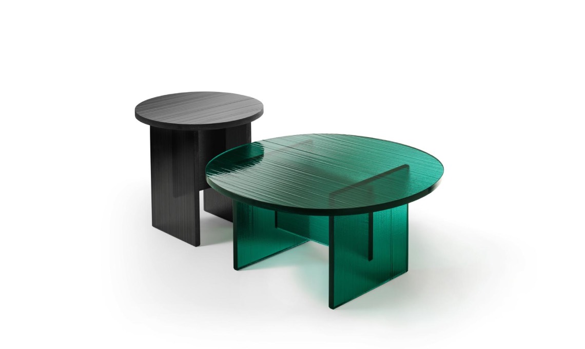 1. Iconico il tavolino in tubolare d’acciaio con piano in vetro regolabile in altezza E1027 di Eileen Gray [ClassiCon, ø cm 52x55/102h].