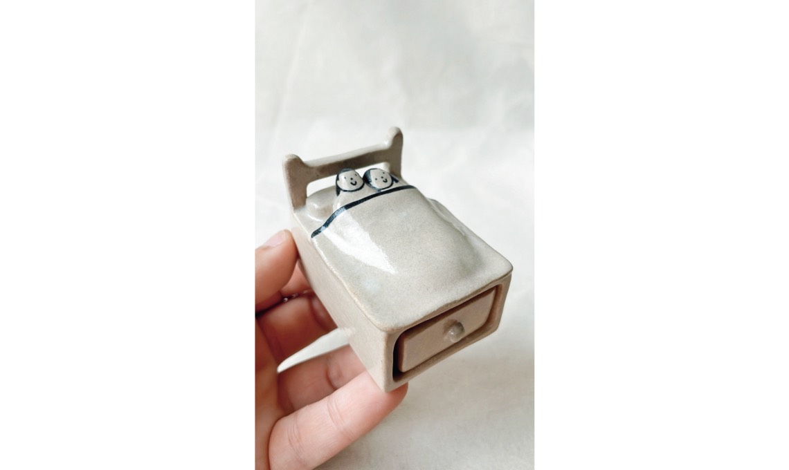 Cosa c’è di più romantico di questo letto in miniatura in ceramica, con il cassettino su misura che contiene una scatola di fiam- miferi? E subito tornano alla mente tutte le fiabe dell’infanzia, un desiderio per ogni fiammella… @danielalv_taller