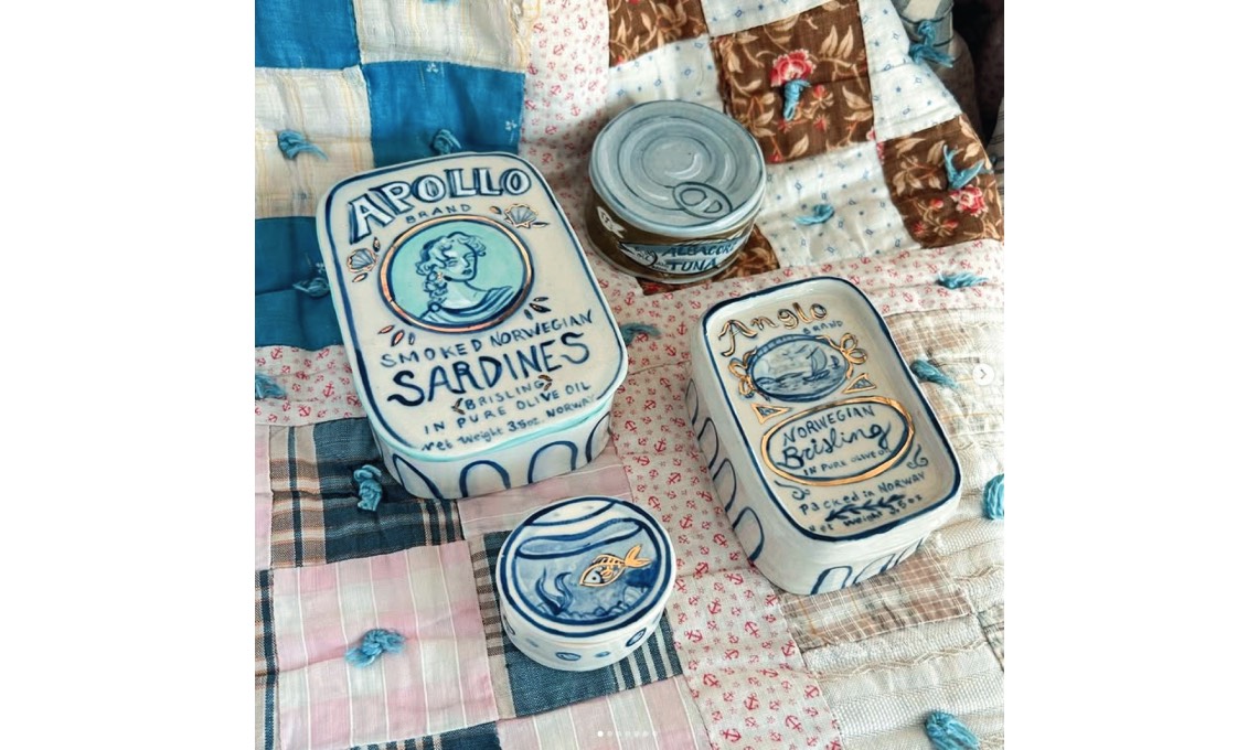 Replicano lattine di tonno e sardine, hanno grafiche vintage e una predilezione per bianco&blu con dettagli dorati. Queste scatolette in ceramica sono belle da vedere (e da collezionare) e al loro interno puoi riporre i tuoi gioielli più cari. @thou_art_momo