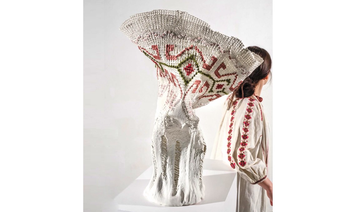 Una tecnica incredibile quella sperimentata da Margi, studentessa bulgara alla Design Academy di Eindhoven: un’immersione fonde porcellana con tessuti a maglia, che in cottura scompaiono lasciando a vista i ricami. Qui sono motivi tradizionali del suo Paese. @margirangelova