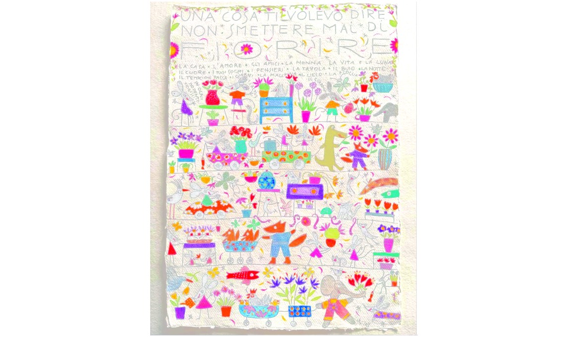 «Disegno il mattino alle 6 quando cantano i merli», racconta Cecilia. Poesia illustrata: ‘Una cosa ti volevo dire: non smettere mai di fiorire! La casa, gli amici, l’amore, la nonna, la vita, la luna, i sogni, i pensieri, la tavola, il buio, la notte, il tempo che passa, i giorni, la macchina, il cielo, la pioggia…’ @cecilia.valli