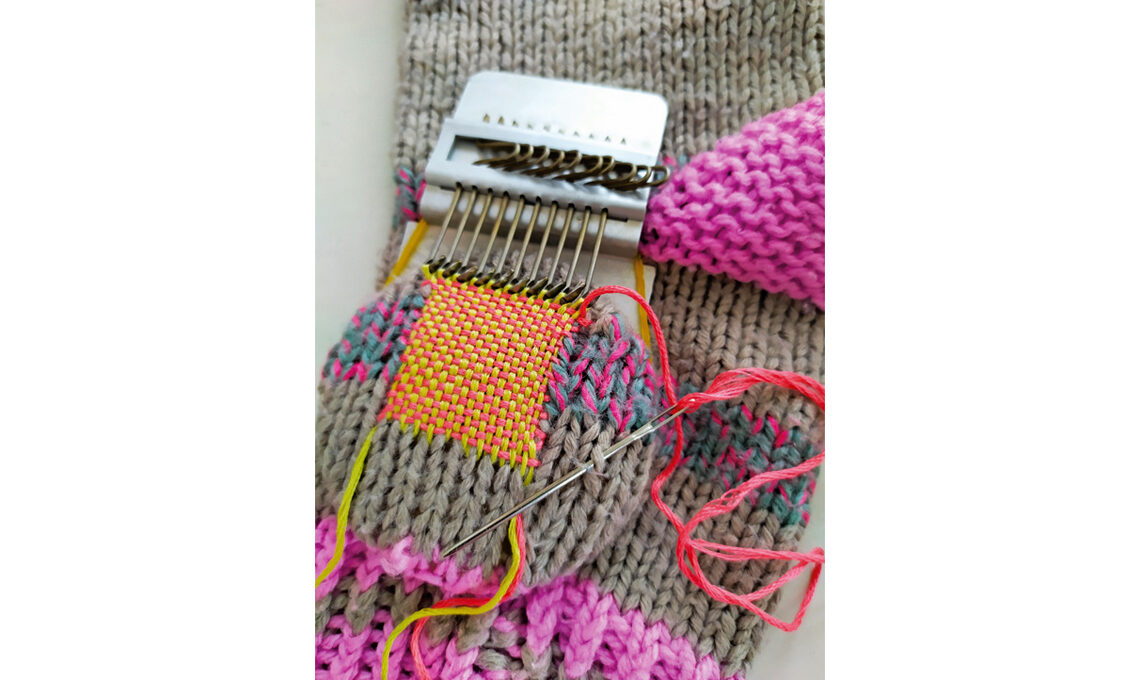 Non solo per ‘tappare buchi’, ma anche per decorare in modo creativo tessuti, jeans, tovaglie ecc… Il divertente micro telaio portatile di Alexonver ha un congegno con gancetti che facilitano la tessitura.