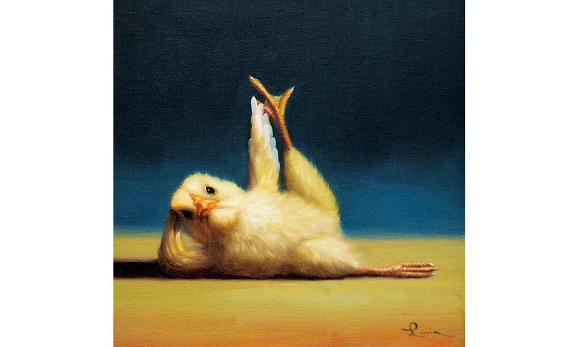 «Con i miei dipinti cerco di dare agli animali una voce e una personalità» racconta Lucia Heffernan. Le sue opere sono originali e perfette allo scopo, e gli ‘asana’ dell’adorabile pulcino sono davvero irresistibili.