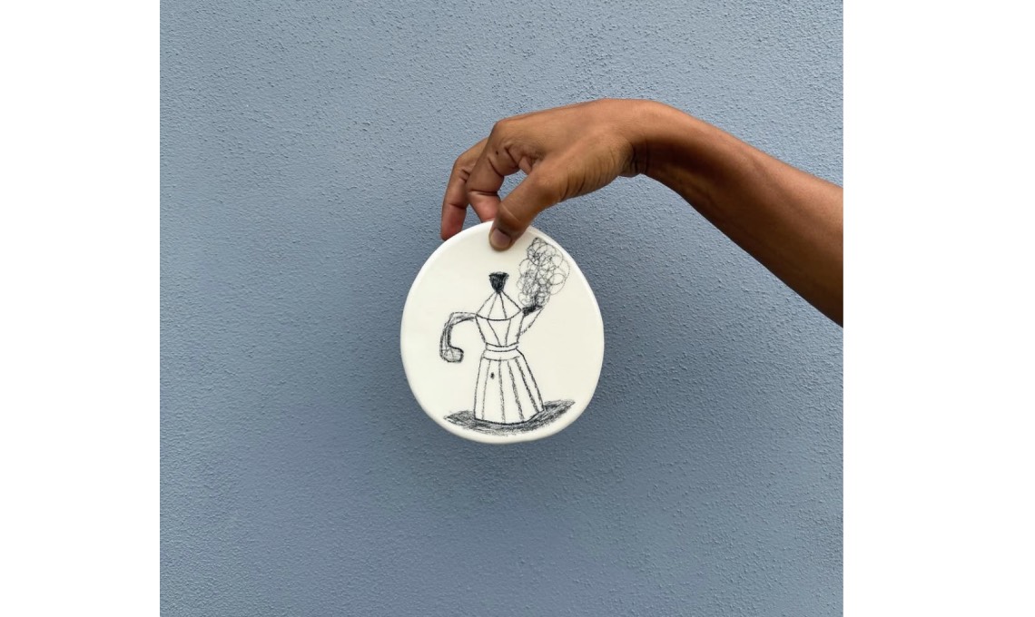 «Un momento d’incontro perfetto: il caffè è una bolla spazio-temporale, che va dall’impegno di lavoro al momento romantico, allo sfogo con l’amica. Il caffè ti ascolta e non ti giudica», parola di Beatrice. @arbanella_art