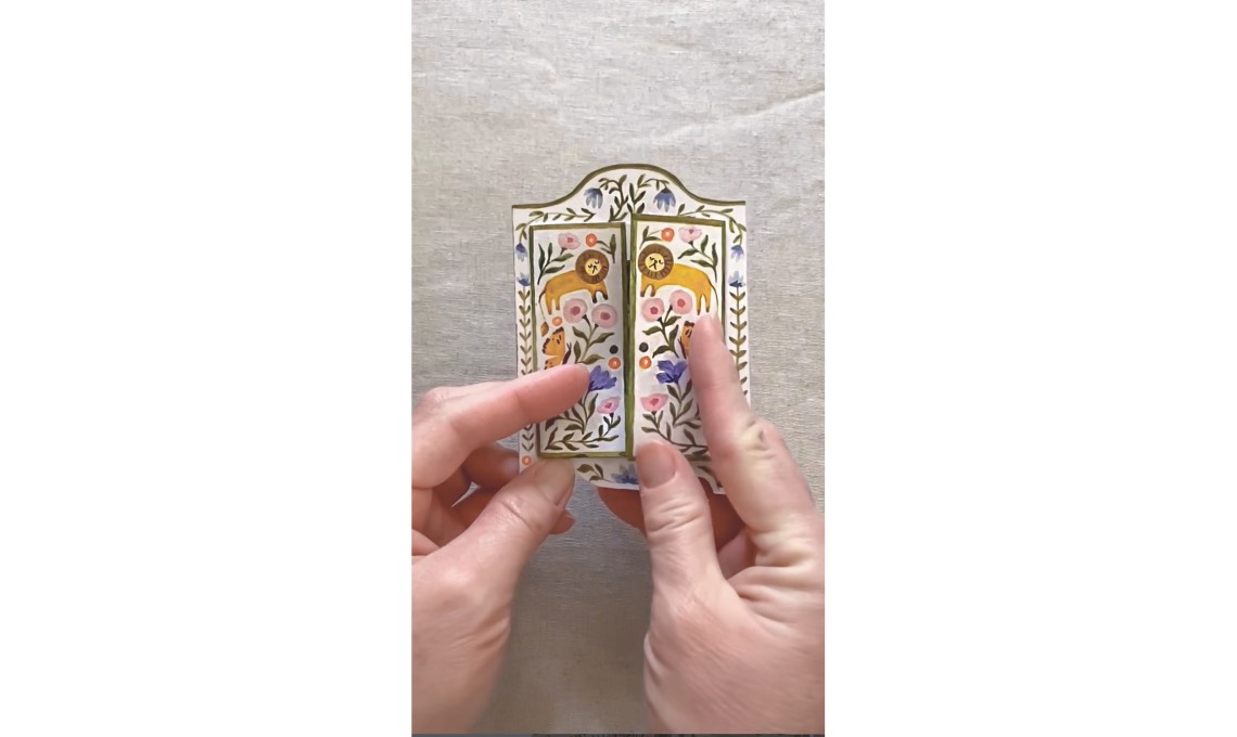 Prima vedi cappotti, cappelli e stivali in bell’ordine, poi come in un diorama, un’im- prevista carrellata pop-up ti trasporta in un bosco, con tanto di montagne innevate sul fondo. Una mirabile creazione di carta quella di Shelley Aldrich, da effetto wow! @shelleyaldrichminimuseum