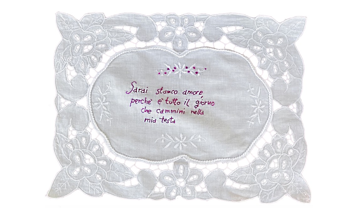 Potenza della semplicità. Come la forza di questi ricami con cui Stefi racconta storie romantiche con ago e filo su tessuti, stoffe, asciugamani e centrini, tutti di recupero. @stefimanidilana