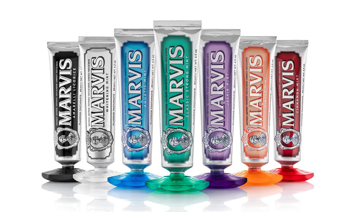 La consolle del bagno si arricchirà cosi di uno svettante tubetto di dentifricio sempre pronto all'uso, immediatamente identificabile, in grado di presentare in modo inedito e sbarazzino il classico e iconico tubetto di dentifricio Marvis. (Giulio lacchetti)