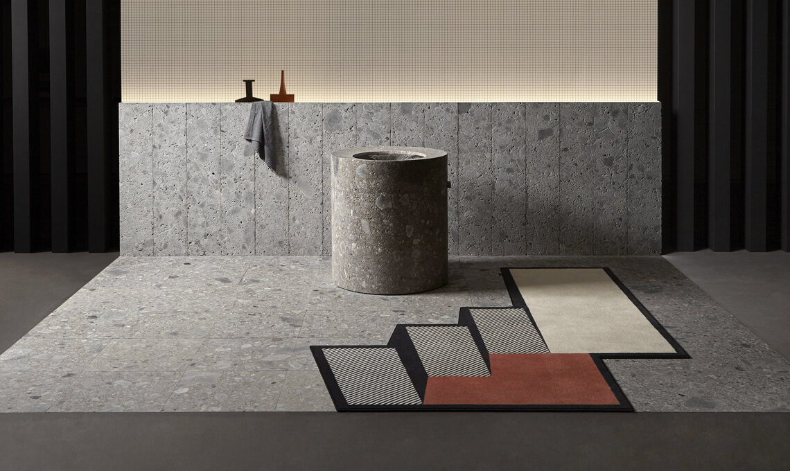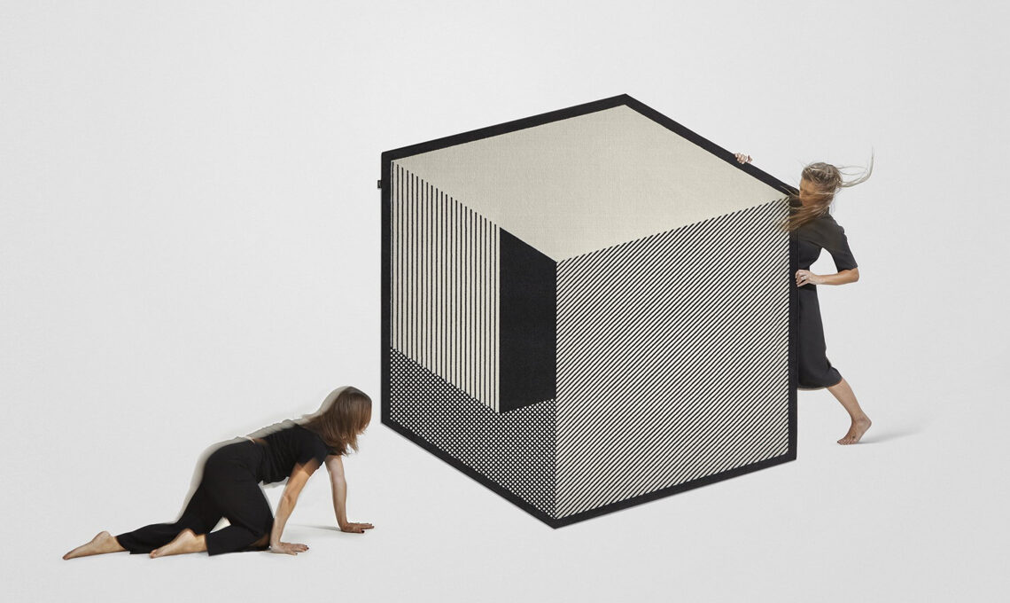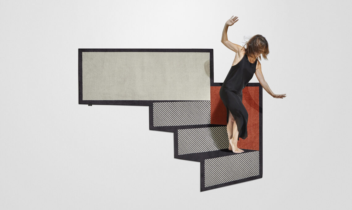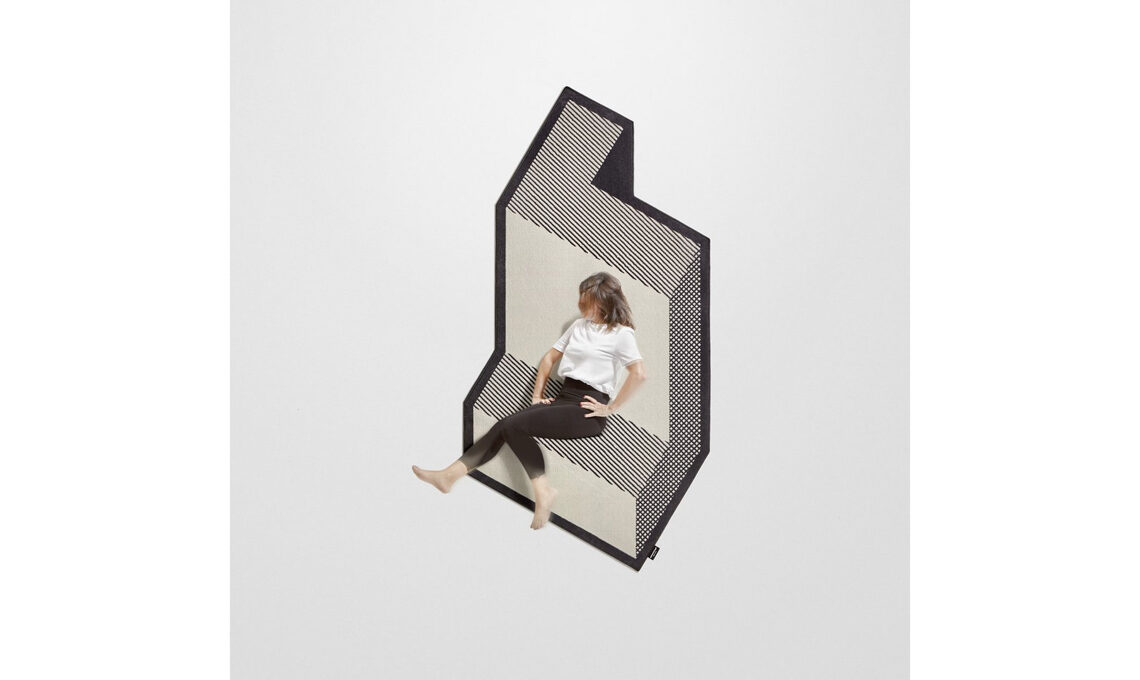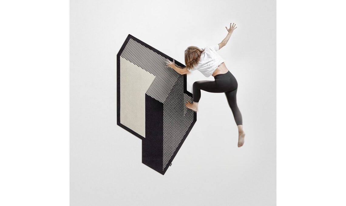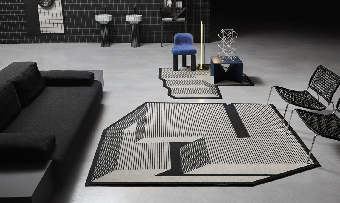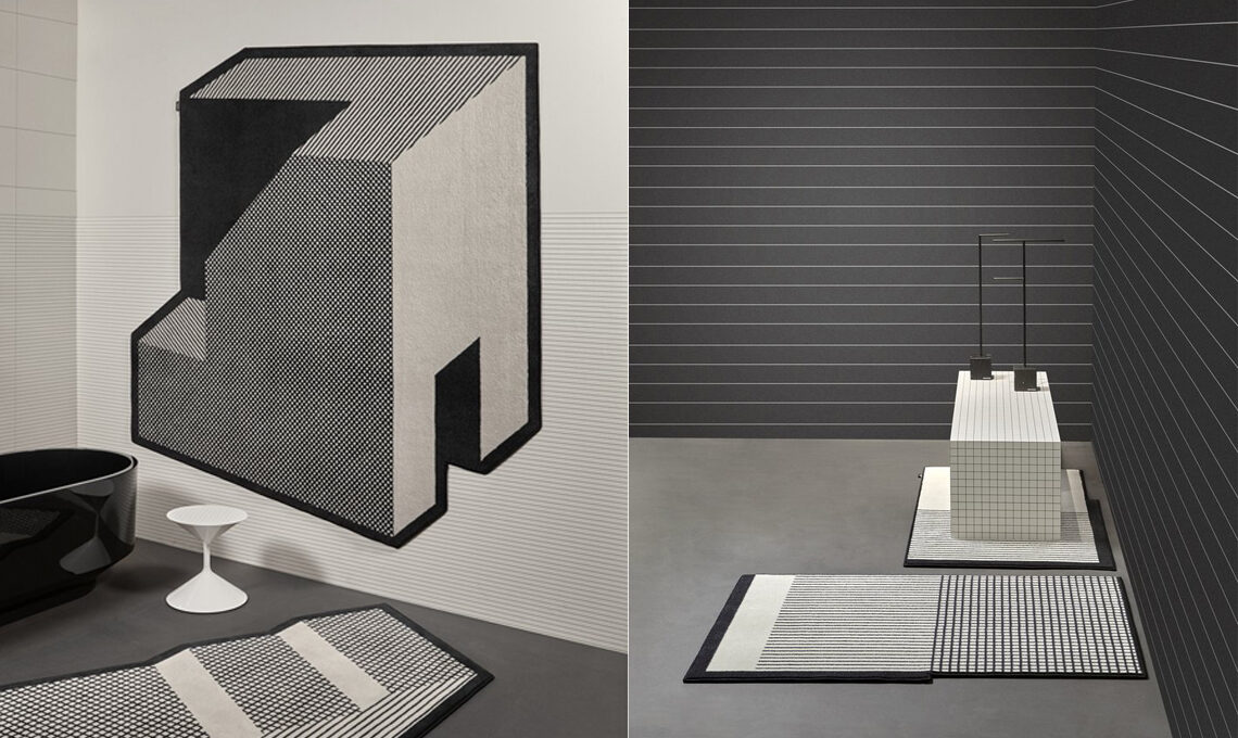 La nuova collezione di Gumdesign per antoniolupi comprende tappeti geometrici dai profili di poligoni irregolari ed effetti ottici tridimensionali, come mostrano in modo efficace le fotografie di Volumi: "effetti ottici che conferiscono tridimensionalità alla superficie, linee inclinate che definiscono nuove prospettive, campiture geometriche che generano una sensazione di movimento e profondità."