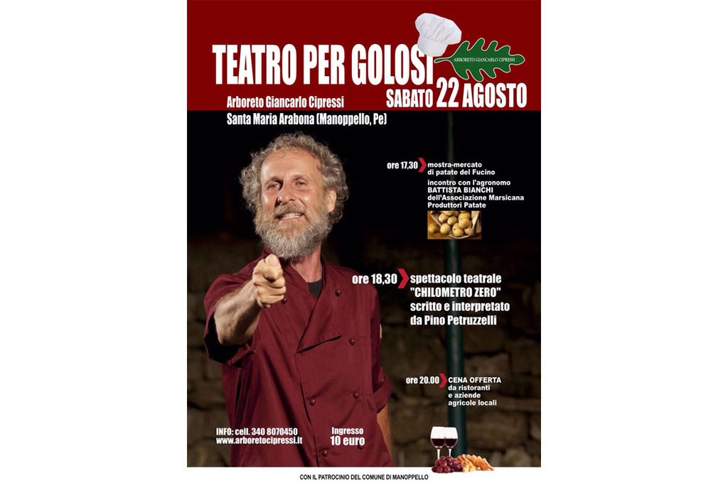 Sabato 22 agosto, alle 18,30, l’arboreto ospiterà 'Chilometro Zero', spettacolo teatrale scritto e interpretato da Pino Petruzzelli (Teatro Stabile di Genova). Ispirato alla storia vera di un grande chef altoatesino, è il racconto di un’esistenza segnata da tanti stop e altrettante ripartenze. Un inno alla vita che coinvolge, diverte e fa pensare.