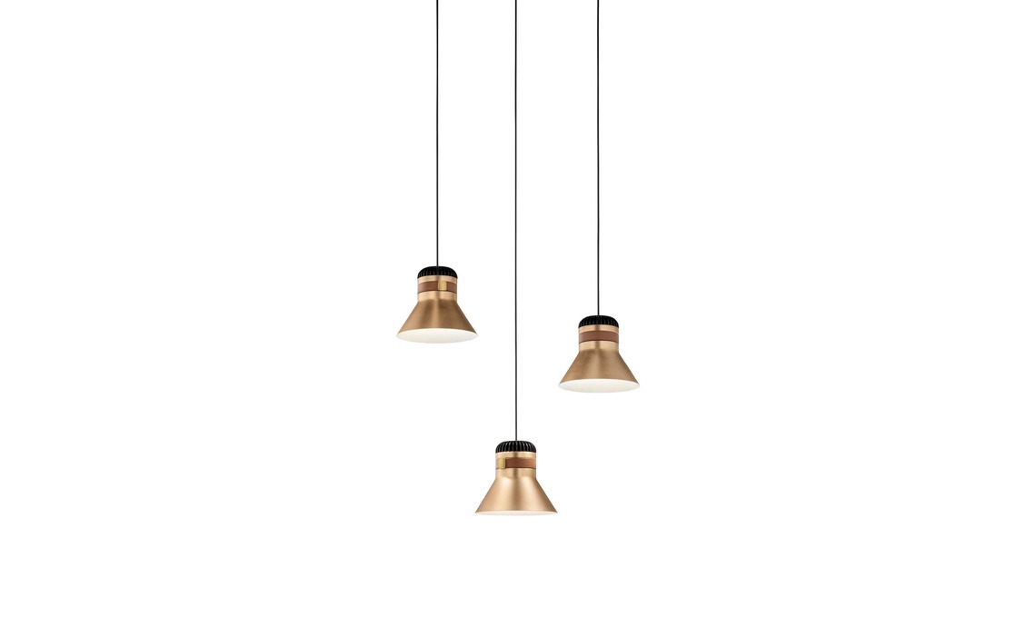 Ottone spazzolato e anticato per la sospensione Cone [Marc Wood Studio,