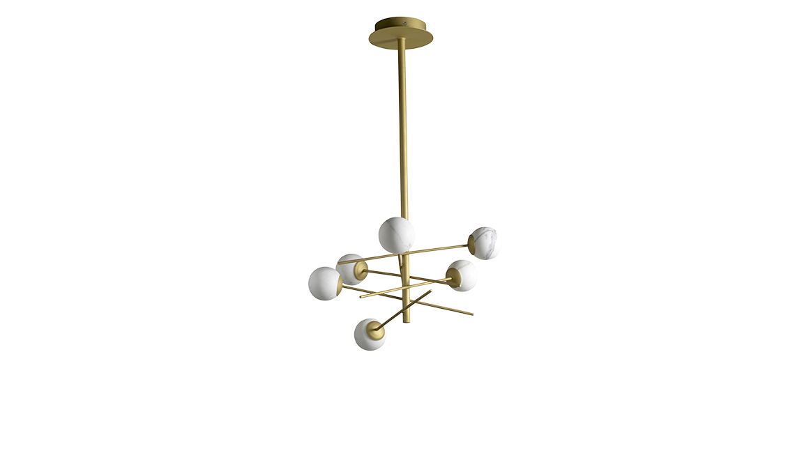 Sospensione Eclissi, con globi in marmo Calacatta di spessore sottilissimo, per una perfetta diffusione luminosa [franchiumbertomarmi, cm 90x