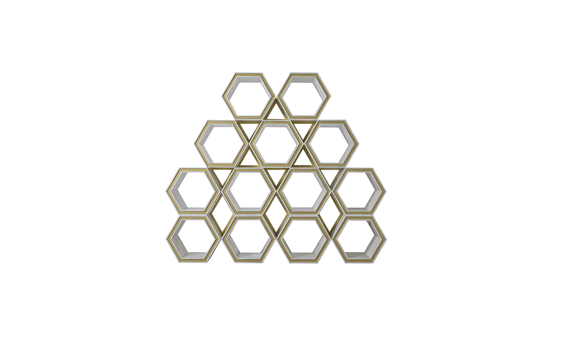 Libreria Hexagon fatta di esagoni autoportanti che puoi far assemblare come preferisci [franchiumbertomarmi, cm 240x 207,8h].