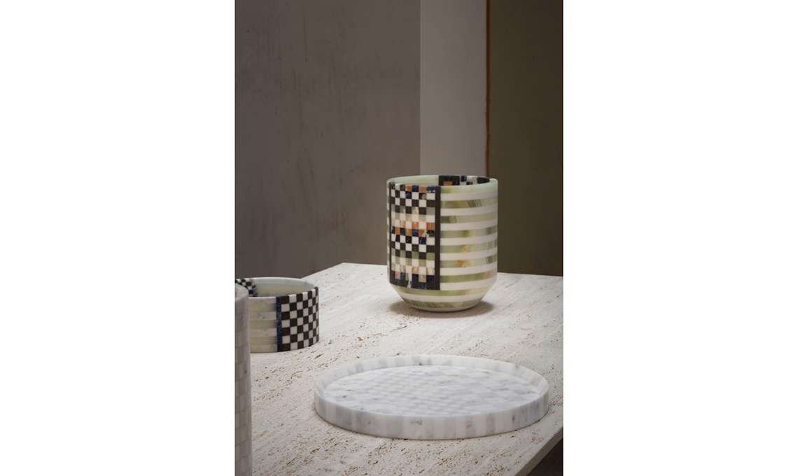 6 pregiati marmi indiani per il pouf Pebble [YANTR by KOY, ø cm 30 e altezza variabile, da €2.440].