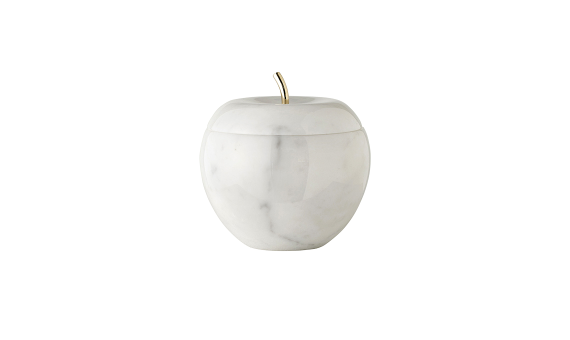 Portagioie a forma di mela di Biancaneve, in marmo e ottone [Opinion Ciatti, ø cm 10x11h €288].