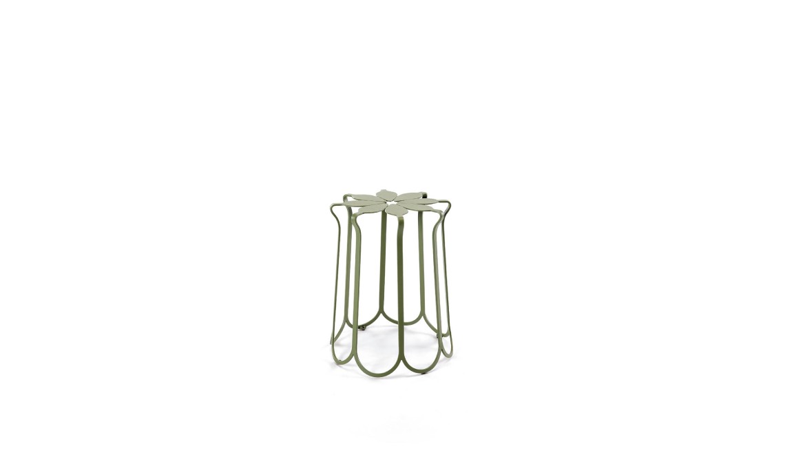 In ferro battuto lo sgabello da esterno Folia di Luca Nichetto [Ethimo, ø cm 33x44h].