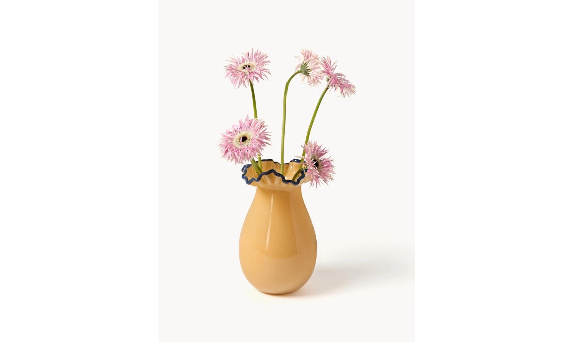 Bordo effetto volant nel vaso Gloria in vetro soffiato decorato a mano [Westwing, ø cm 14x24h].