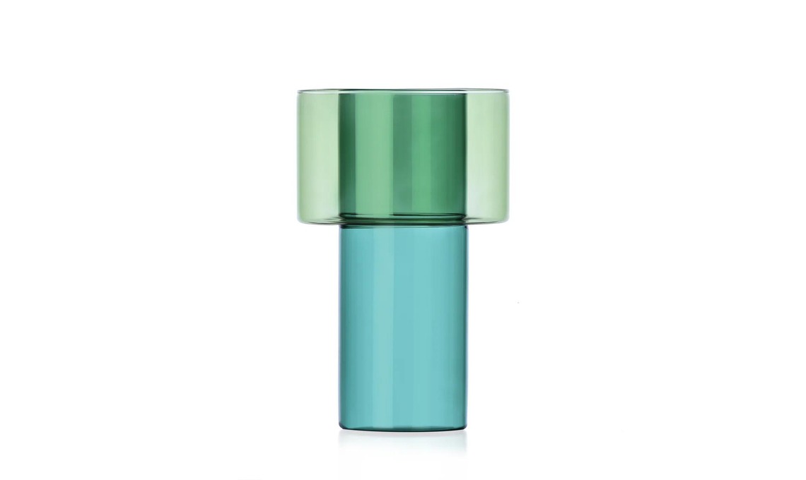 14. Vetro modellato a mano nel vaso Boreale A bicolore, design Lina Obregón [Ichendorf Milano, ø cm 13x21h].