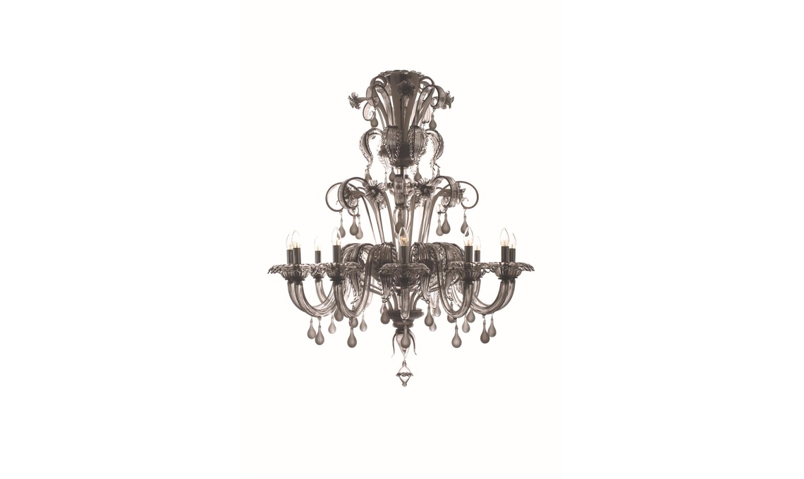 10. È la rilettura di un classico lo scenografico chandelier Alpaga in vetro di Murano [Veronese, ø cm 105x110h].