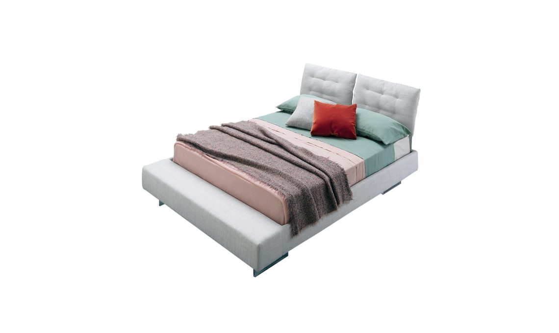 Concepito come un’isola il letto Limes di Sergio Bicego, con testiera orientabile [Saba Italia, cm 174x240x89h prezzo su richiesta].