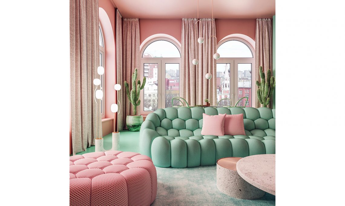 Eleganti interni a New York curati dall’architetto Dmitry Reutov con le sedute ‘caramella’ di Roche Bobois [reutovdesign.ru].