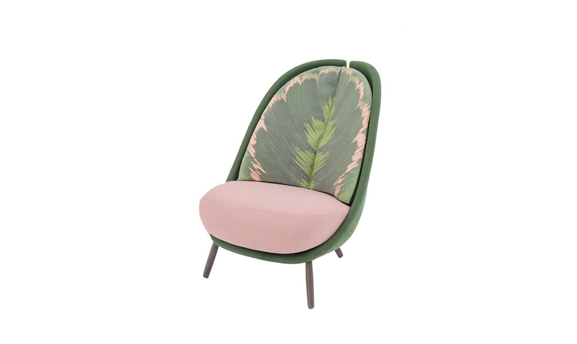 nei raffinati tessuti in cotone e seta Tiepolo di Peter Marino per [Rubelli], lavorati a rilievo.