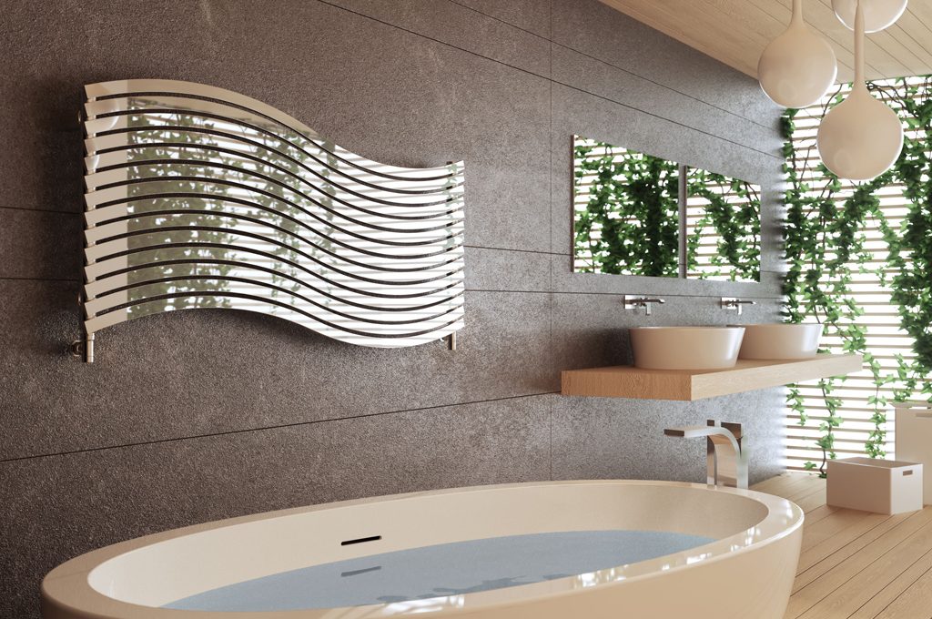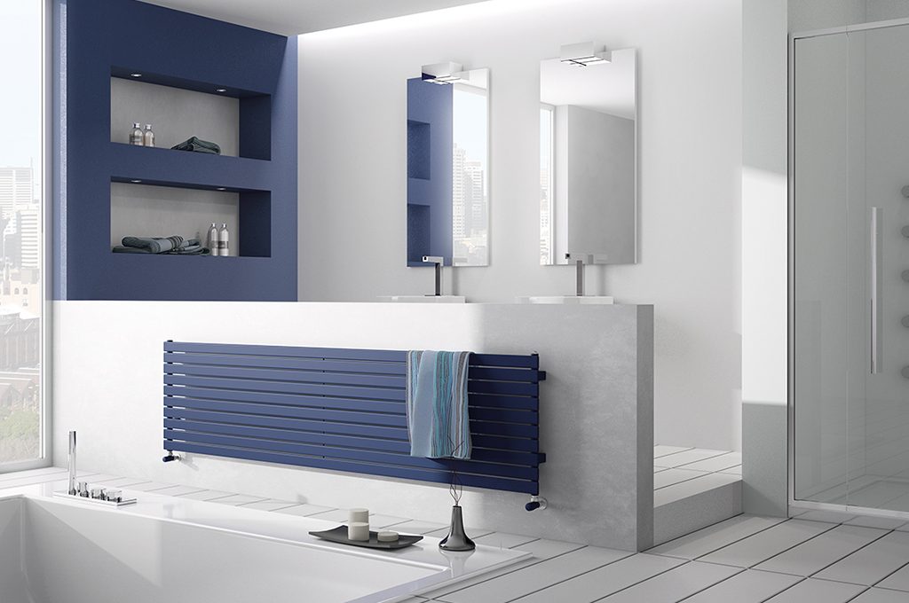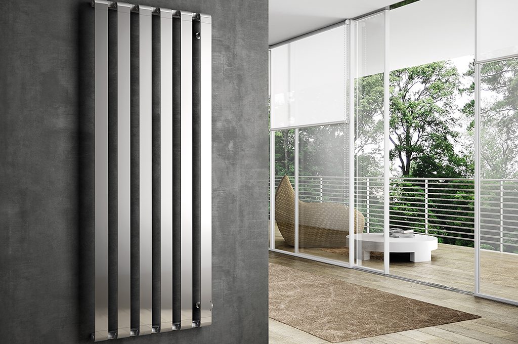 Il nuovo radiatore Step (Irsap), disegnato da Antonio Citterio, è in alluminio con doghe sottili alte 4 cm, in 4 finiture. Ha il collegamento idraulico a scomparsa, nella stessa finitura del radiatore