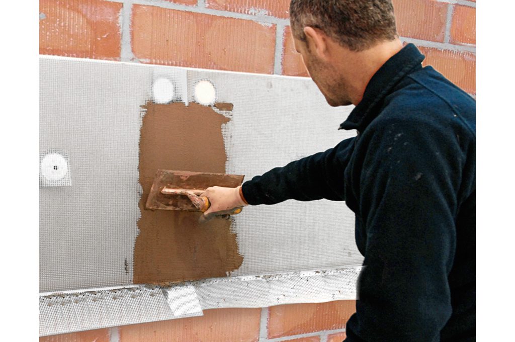 Il pannello prefinito IsoRapid Wall (Monier), che si applica in sole 5 mosse è perfetto per l’isolamento termico interno ed esterno, a soffitto e a parete. In foto l’incollatura (1)