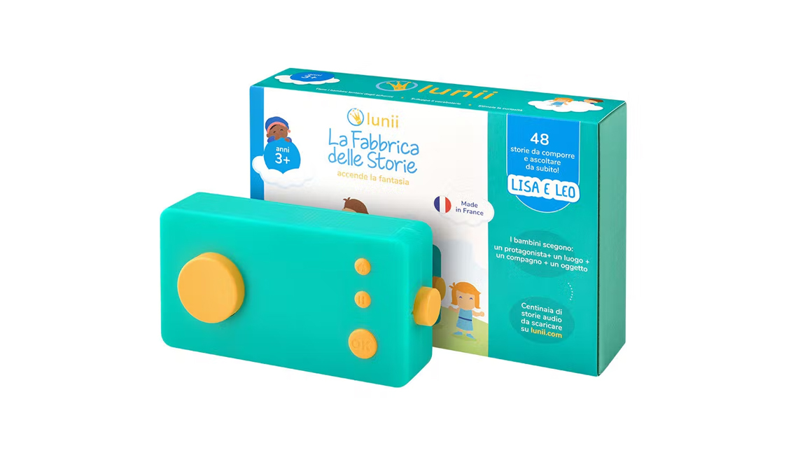 È ciò che si propone La Fabbrica delle Storie di Lunii: un dispositivo ricaricabile senza batterie, né schermo né onde elettromagnetiche che somiglia a una radiolina Anni ’80, per ascoltare centinaia di storie interattive in 8 lingue.