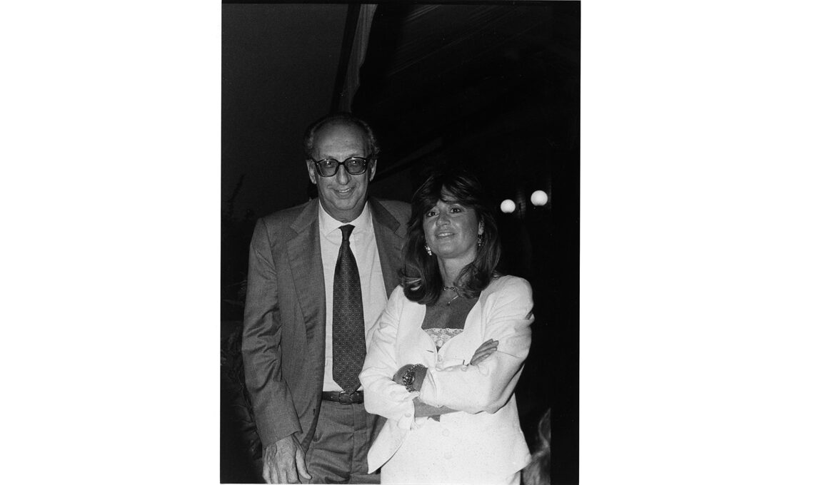 1990 - Gilda Bojardi e Franco Cassina ritratti al Palazzo dell’Informazione, sede del Meeting Point della Designer’s Week organizzata da Interni dal 20 al 23 settembre 1990 coinvolgendo 120 negozi e showroom milanesi dell’arredamento: di fatto, il primo FuoriSalone inteso come circuito strutturato di presentazioni in città [foto di Luciana Mulas]