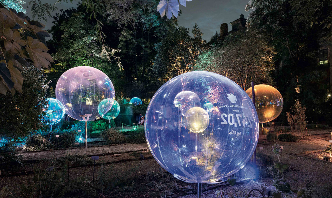 2021 - Orto Botanico di Brera, installazione Natural Capital di CRA-Carlo Ratti Associati con Italo Rota e Alessio Fini, presentata da Eni nell'ambito della mostra Creative Connections organizzata da Interni. Ogni sfera rappresenta l’anidride carbonica assorbita da ciascuna specie vegetale in un ciclo di vita. Per riflettere sul tema della decarbonizzazione e della conservazione delle foreste [foto di Andrea Martiradonna]
