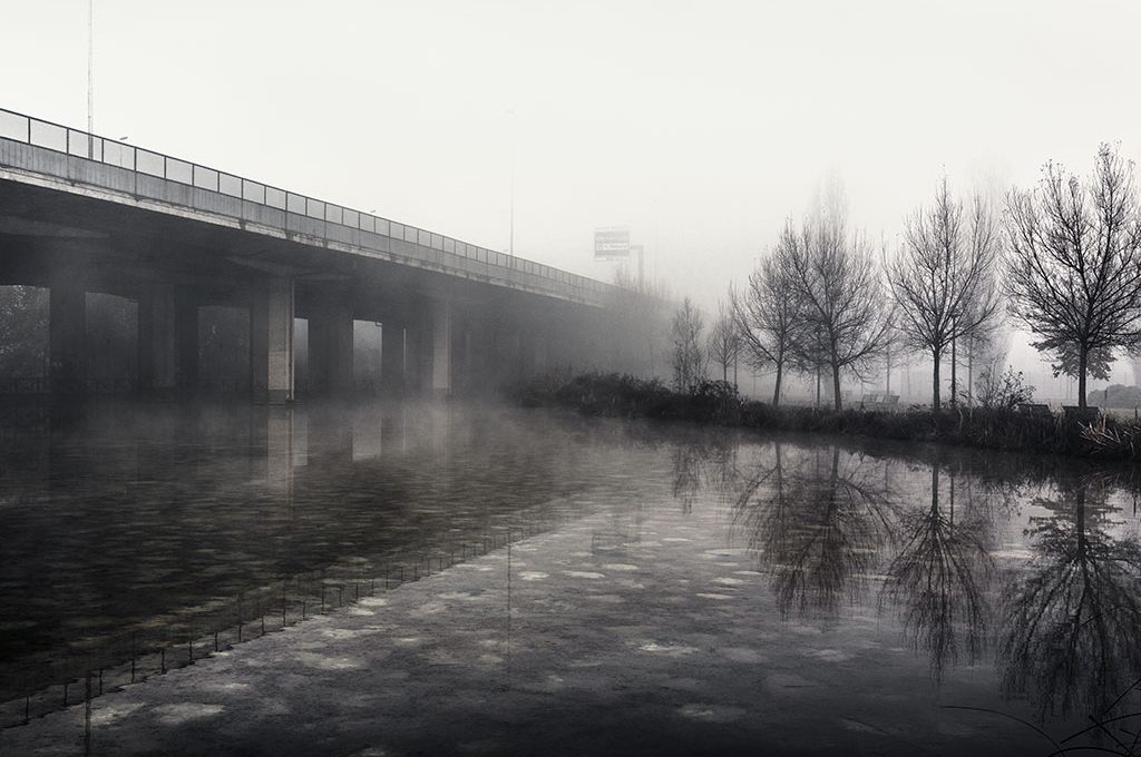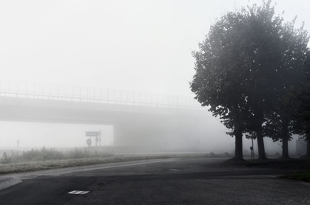 Ci sono 34 fotografie a colori, in questo libro di Alex Pardi... be', colori si fa per dire... sono i grigi della tangenziale che sfumano nella nebbia e in quei rari momenti in cui non passa nessuno. Tangenziale (Peperoni Books, 2015, 80 pagine) è una raccolta di immagini suggestive che raccontano un "non luogo" tipico dei nostri tempi: l'autore ha percorso le tangenziali milanesi in rari momenti deserti, per cogliere la sensazione del tempo che si ferma, un respiro, un attimo di eccitante solitudine prima che il traffico torni a correre.