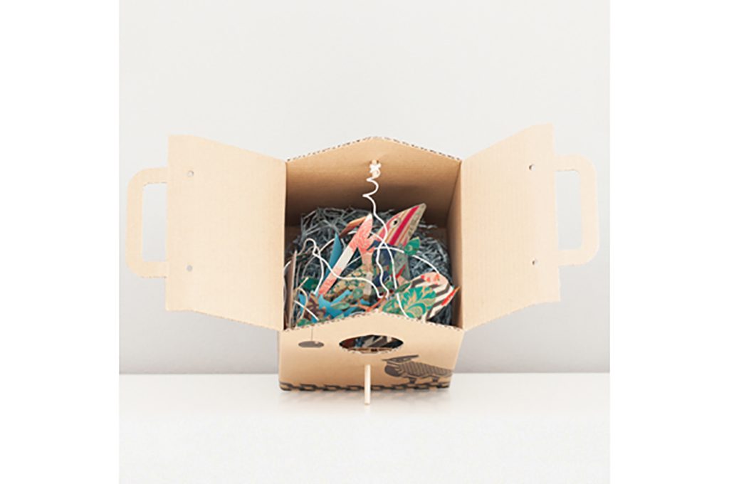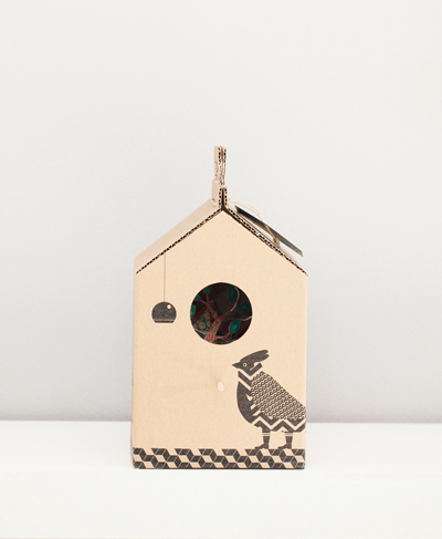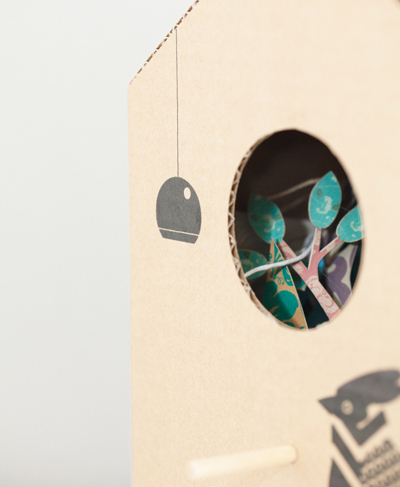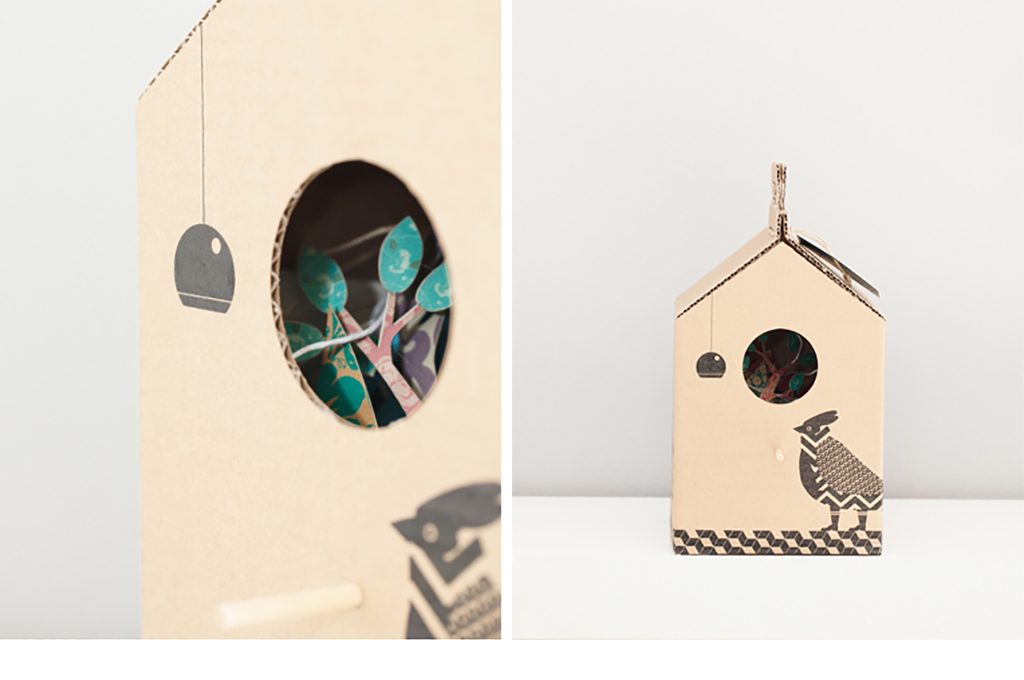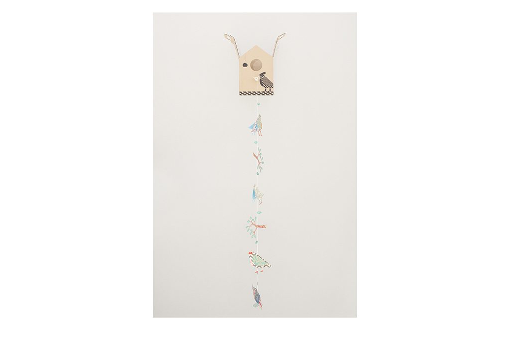 La “Casetta degli Uccellini” è una casetta in cartone color avana che contiene una fila di uccellini in carta da appendere.