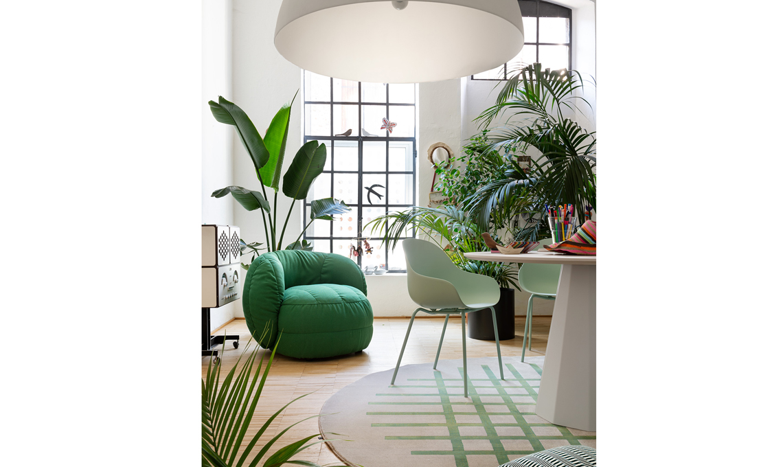Non solo: il rivestimento Oceanic, realizzato in collaborazione con Seaqual, community che combatte l’inquinamento di mari e oceani ripulendoli dai rifiuti, si ricava dal riciclo delle bottiglie in plastica: ne servono 26 per un metro di tessuto e circa 100 solo per rivestire una poltrona Reef.