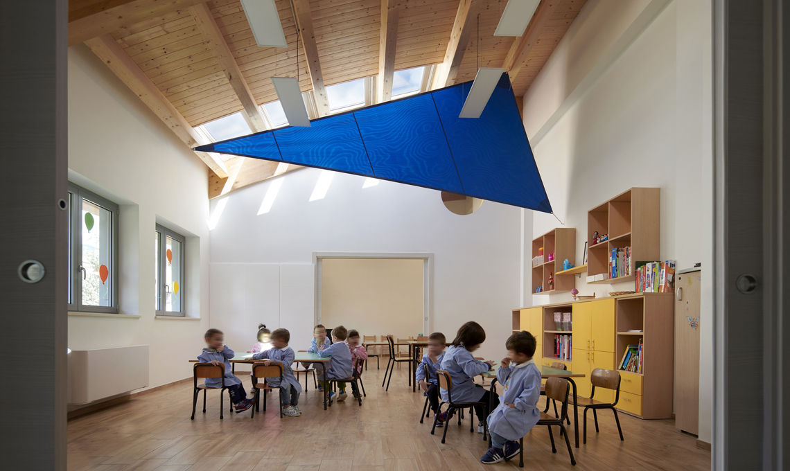 Velux ha ha contribuito alla progettazione illuminotecnica e alla fornitura gratuita dei lucernari, inseriti in grande numero per portare all’interno degli ambienti scolastici luce e ventilazione naturali, a beneficio degli studenti.