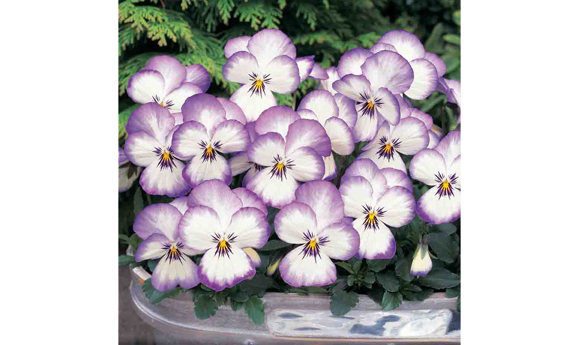 Miniviole ricadenti ® (Viola x wittrockiana): sono viole del pensiero a fiore medio-piccolo (diametro 3-4 cm) con portamento ricadente. Ogni pianta può portare centinaia di fiori ed è perfetta per abbellire finestre e balconi. Fioriscono durante l’inverno, sono molto resistenti alle intemperie e non temono il gelo.