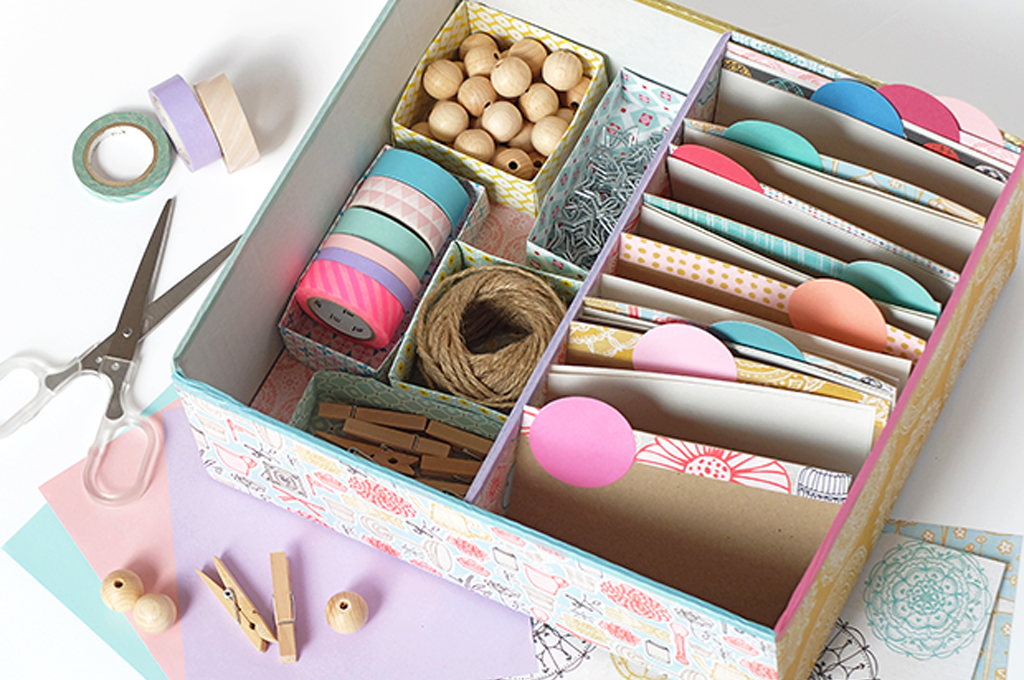 "Sono sempre alla ricerca di soluzioni per organizzare il mio angolo craft, così ho deciso di trasformala in un divertente e utile contenitore! Bastano tante carte colorate, forbici, colla e un pizzico di fantasia!"
