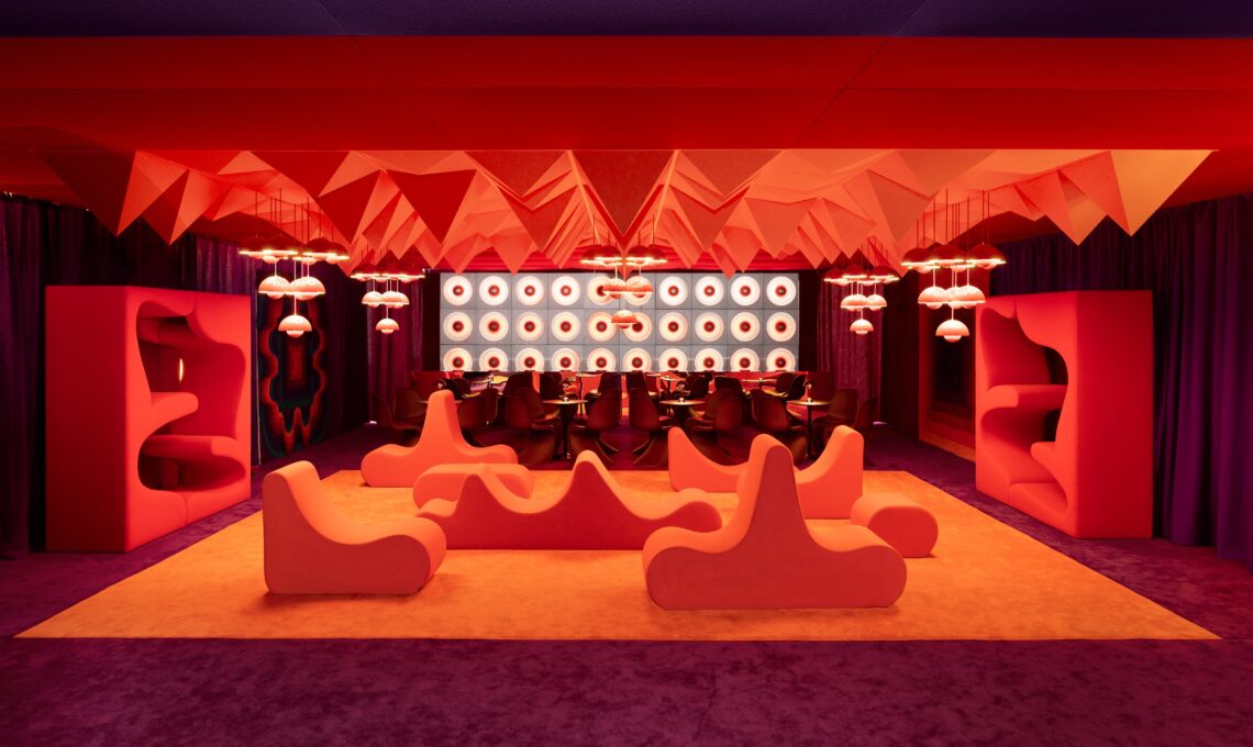 Il tutto usando esclusivamente cinque tonalità diverse di rosso! Nacque così il ristorante più colorato di tutta la Danimarca e fu un successo immediato. Subito le nuove sedute a cono rovesciato si fecero notare e un imprenditore le mise in produzione fondando appositamente l’azienda Plus Linje. Panton ebbe in questo modo la possibilità di sperimentare ulteriormente con la forma del cono: in rapida successione nacquero la versione sgabello della Cone Chair, Cone Stool, e un anno dopo la Heart Cone Chair, diventata famosa per il suo schienale a forma di cuore.