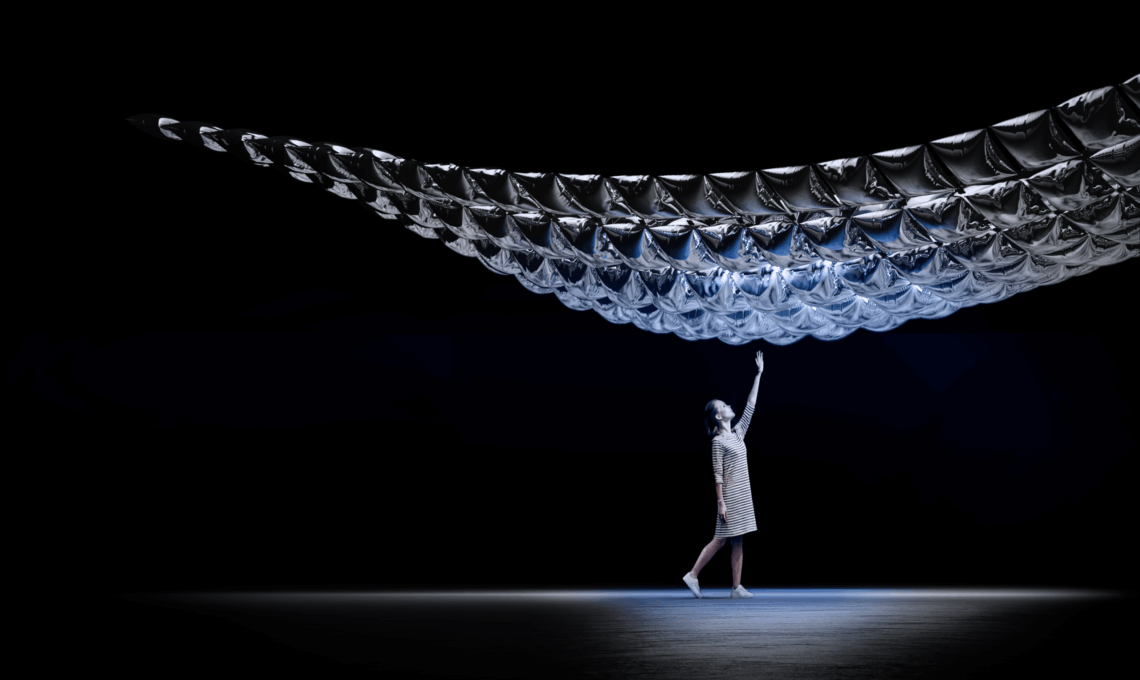 L’installazione è una struttura aerea robotica e interattiva composta da moduli leggeri gonfiati a elio e collegati da nodi motorizzati. Sospesa sopra i visitatori, crea un cielo artificiale e reattivo che cambia in base alla presenza e al movimento nello spazio. Sensori e attuatori generano una mesh dinamica in continua trasformazione, esplorando la leggerezza come equilibrio tra galleggiamento e controllo e ridefinendo la relazione tra corpo, spazio e atmosfera.
