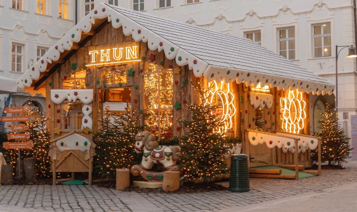 Un rifugio di luci, profumi e tradizione. Anche per il 2025 THUN torna ai Mercatini di Natale di Bolzano con il suo iconico chalet di montagna, uno degli spazi più attesi dai visitatori del capoluogo altoatesino durante il periodo festivo. Realizzato in legno e decorato con colori caldi, addobbi e dettagli artigianali, lo chalet accoglie gli ospiti in un percorso immersivo che celebra l’essenza del Natale secondo THUN. All’interno, le nuove collezioni dialogano con i grandi classici del brand: dal tradizionale presepe alle miniature da appendere, dall’elegante Angelo del Natale alle figure più amate, come Teddy con il suo Carillon e Pepi, l’omino di pan di zenzero. Una narrazione visiva che alterna tavolini, scaffali e cassetti colmi di creazioni, evocando la casa-laboratorio di Babbo Natale, tra doni appena preparati, dolci delle feste e scintillanti scenografie. Il percorso porta i visitatori alla scoperta del mondo THUN, fatto di artigianalità, colore e dettagli dipinti a mano.
