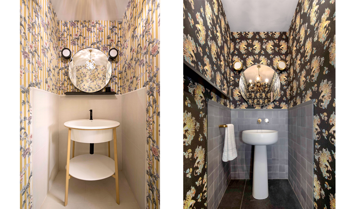 È il caso in cui possiamo permetterci di mettere colore sul soffitto – bellissimo! – e di usare anche tinte decisamente scure, specie se sono già bui e li illumineremo solo con la luce artificiale. Trasformare bagni piccoli e tristi in luoghi che stupiscono dà una soddisfazione grandissima. In questo caso servirà un ordine rigoroso, in giro non ci dovranno essere saponi, creme e pasticci, che andranno tutti riposti in piccoli armadietti sospesi. Non potranno mancare, invece, colore o carta da parati, uno specchio particolare e una lampada a sospensione, magari di cristallo o a parete, come una piccola ventolina rivestita in tessuto.