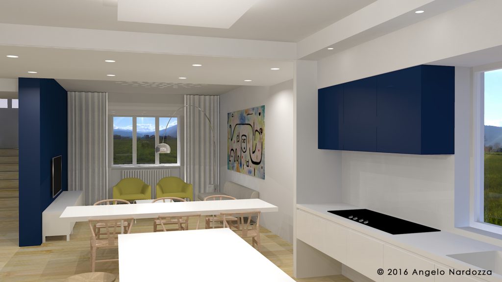 Un piccolo edificio di due piani diventa un unico ampio spazio abitativo su due livelli per una giovane coppia. I committenti desideravano realizzare, con interventi murari minimi, un'ampio living con cucina e zona pranzo per ospitare tanti amici, uno studio, una zona notte con camera matrimoniale e tre camere per ospiti e bimbi in arrivo.