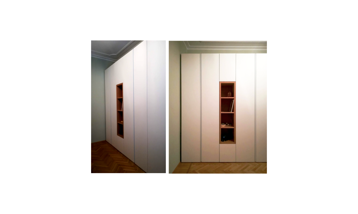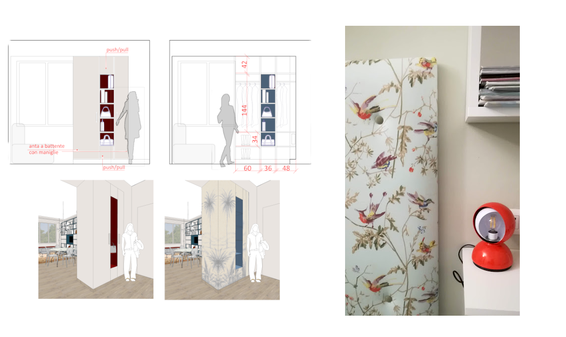 Nel resto dell’appartamento sono stati realizzati arredi su misura sia per le armadiature che per altri elementi contenitori.
