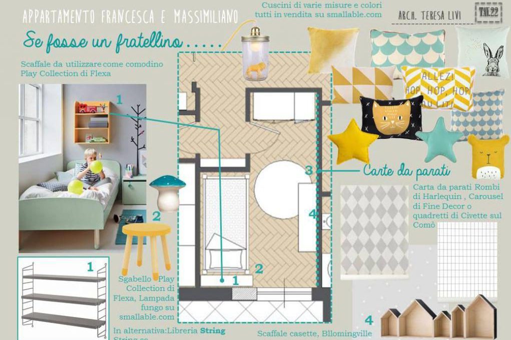 Proprio in previsione di questo arrivo i suoi genitori mi hanno chiamato per adeguare il loro appartamento ricavando dal grande soggiorno una nuova cameretta.