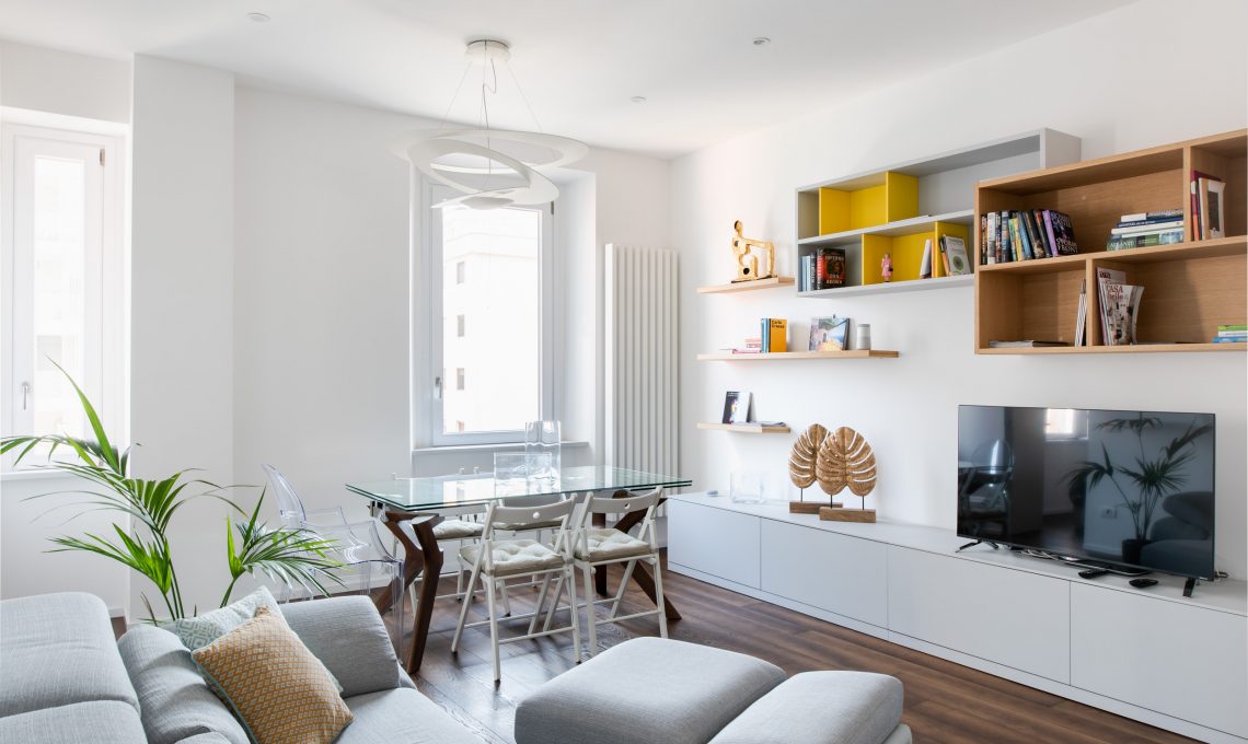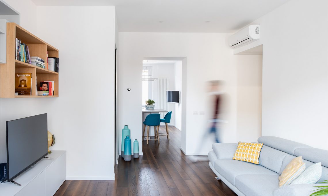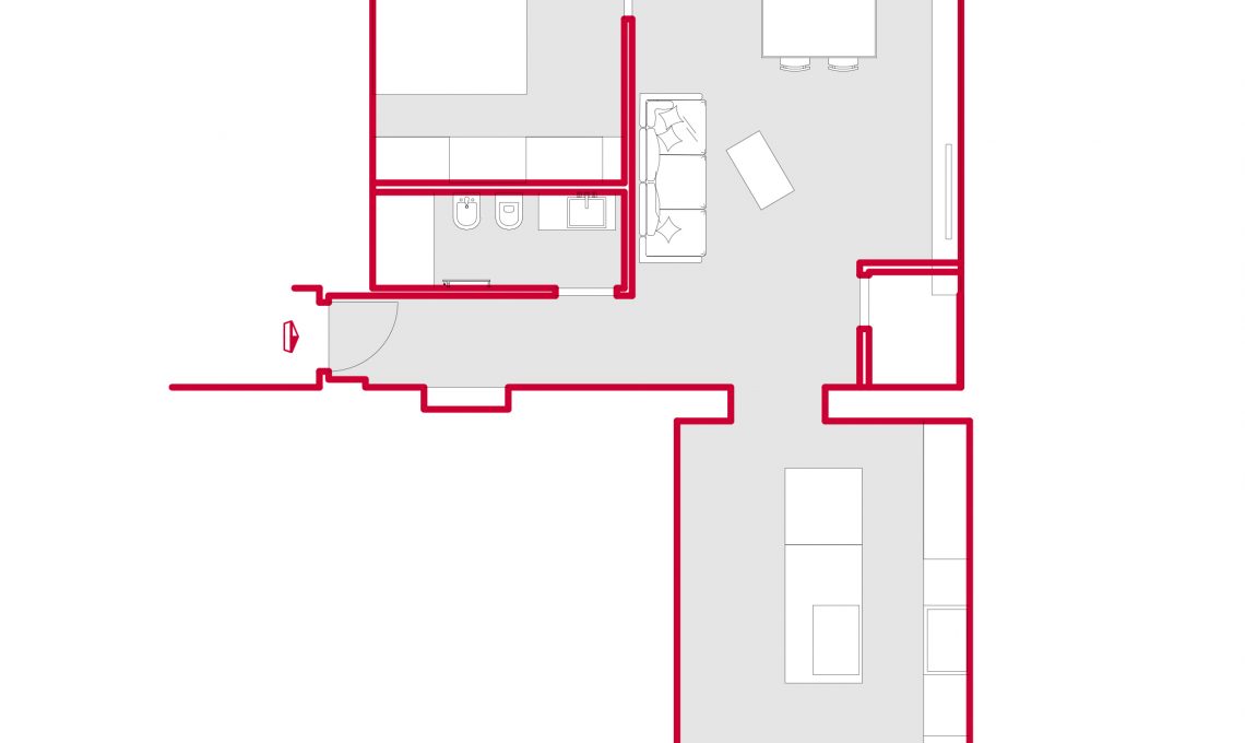 Ristrutturazione di un ampio trilocale a Milano. L'appartamento era suddiviso in 3 stanze distribuite da un grande corridoio; è stato sventrato a tutti gli effetti, demolendo tutte le partizioni interne, rifacendo il solaio ormai in cattive condizioni. La casa è stata pensata per un single e quindi gode di grandi spazi: una cucina che si affaccia sul soggiorno composta da un blocco a parete e un'isola disegnata da JRK, nostro partner. L'ingresso è valorizzato da una luce led che sale fino al controsoffitto e crea un percorso luminoso. Il bagno, ricavato nel corridoio d'ingresso è stato impreziosito da piastrelle in gres porcellanato effetto marmo di Casalgrande Padana. Il vero fulcro della casa è la zona giorno, disegnata su misura e molto luminoso. Per una maggior armonia sono state realizzate porte raso muro.