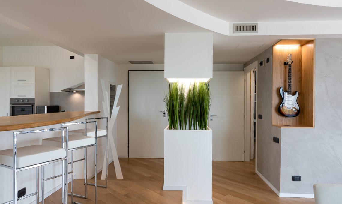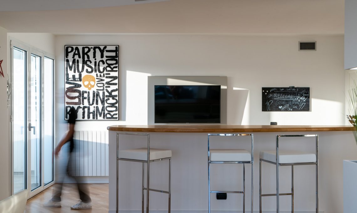 Il committente è un rinomato youtuber italiano che ha richiesto il nostro aiuto per dare carattere al suo nuovo appartamento. Riducendo le demolizioni al minimo si è provveduto a un rinnovo completo degli spazi, due appartamenti comunicanti, in modo da rispecchiare la personalità e il gusto del cliente.
