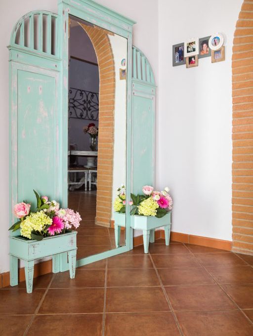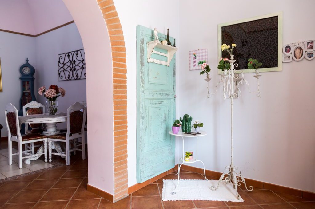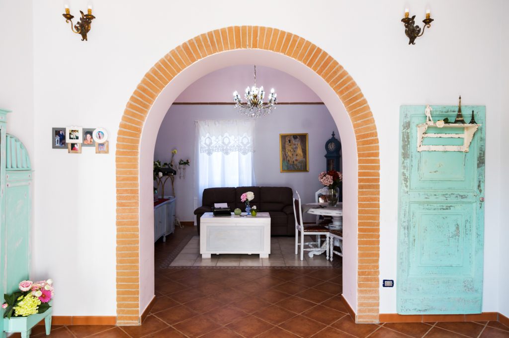 L'appartamento di cui mi sono occupata quasi interamente (dico "quasi" perchè quando è stato richiesto il mio intervento erano già state scelte le bussole, i pavimenti, il divano, gli infissi e la cucina) in questi mesi è antico con soffitto a volte ed un'arcata che separa l'ingresso dal salottino. L'ambiente è molto luminoso ed in accordo con le esigenze dei proprietari abbiamo stabilito i colori, i tendaggi, la lavorazione dei complementi d'arredo ed alcune idee creative.