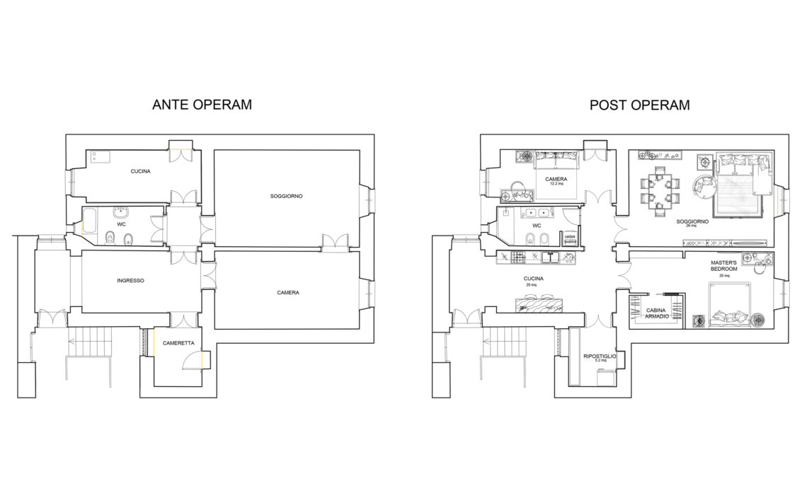 Questo appartamento è stato ristrutturato completamente, si trovava in uno stato di grande degrado, è stato per noi un progetto molto affascinante, una vera è propria sfida, mettere del nostro, e allo stesso tempo valorizzare ciò che era già presente, non era affatto banale!