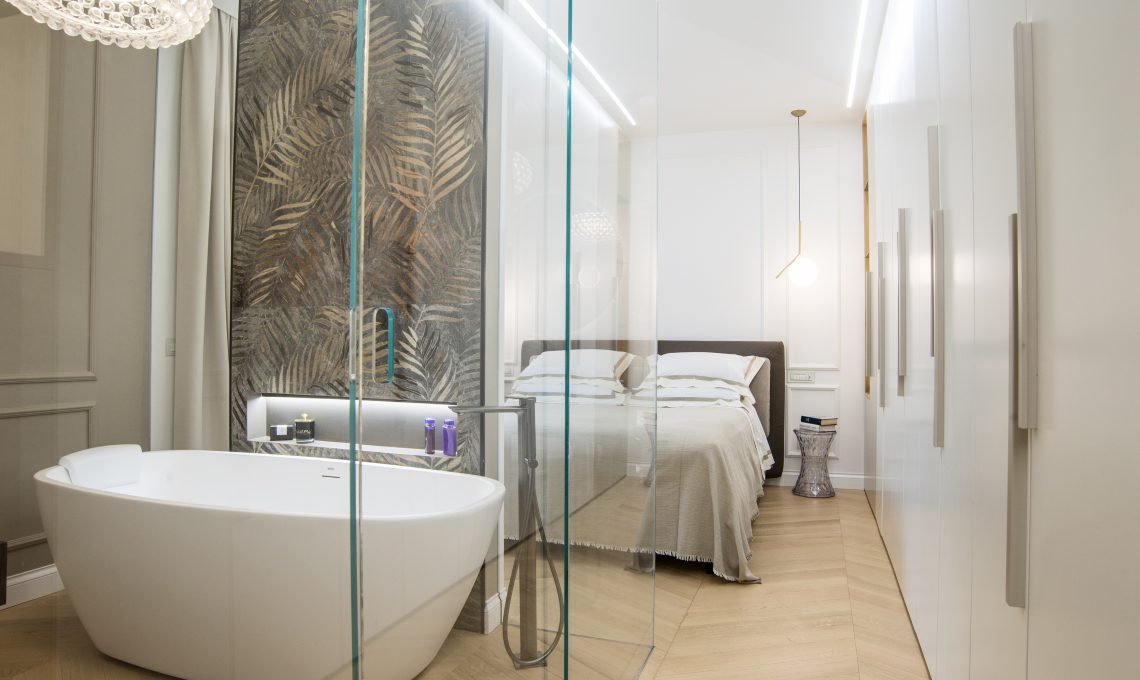 Ci siamo concentrati principalmente sull'appartamento principale, che doveva essere elegante, accogliente e dotato di un bagno "WOW", così definito dalla nostra cliente.